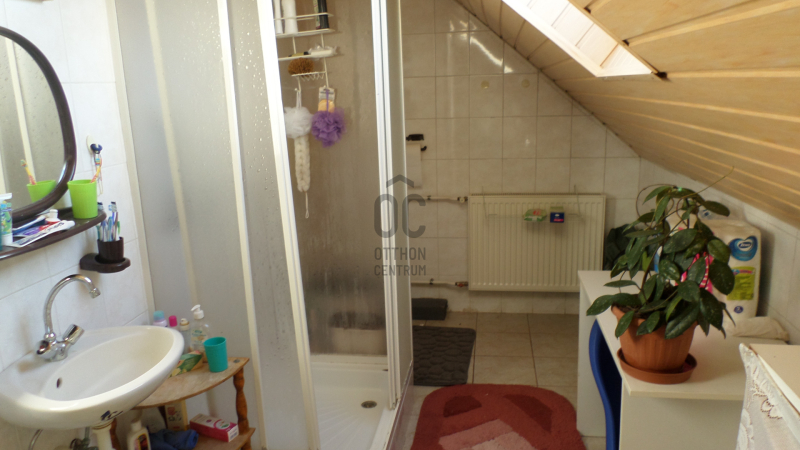 Ezen a folyamatosan fejlődő, szépülő, épülő településen ajánlok megvételre egy két szintes (tetőtér beépítéses) családi házat. Az épület vasbeton sávalapra, UNIFORM 42-es tégla falazattal, vasbeton gerendás, beton béléselemes födémmel, fa tetőszerkezettel, cserép fedéssel készült. A kivitelezést maga a tulajdonos végezte, aki kőműves mester, így garantált, hogy az építkezés során mindenből az akkori kornak megfelelő legjobb minőség lett a legszakszerűbben beépítve, hisz a saját családjának építette. Ez a mai napig nyomon követhető, hisz az épület statikailag kitűnő állapotban van. A folyamatos karbantartásnak köszönhetően minden célnak megfelel, a mai kor követelményeit a nyílászárók cseréjét már nem végezték el. A telken áll még egy melléképület, ahol nyári konyha, tároló, garázs és állattartó ólak vannak. Az épület előtt egy fedett tornác áll, mely nagyon hangulatossá teszi a napfényes délutáni pihenést. A nyári konyha alatt található egy 10-12 négyzetméteres pince, mely száraz és jól hasznosítható. A telek nem nagy, 719 négyzetméter, de több gyümölcsfa található benne, valamint a feleség még egy kis házi kertet is kialakított, ahol minden évben a családi asztalra tudott termeszteni paprikát, paradicsomot és más zöldségeket.