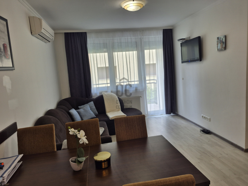 A lakás világos, napfényes, és a beépített bútorok és szekrények maximálisan kihasználják a teret, míg a LED hangulatvilágítás különleges atmoszférát teremt.