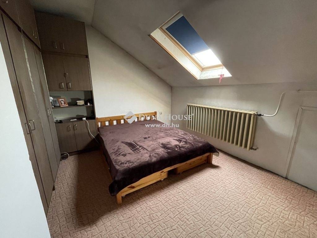 Elosztása a földszinten: konyha étkezővel, kamra, kazánház, garázs, WC; fél szinten: egy szoba erkéllyel; első szinten: 2 utcára néző szoba nagy erkéllyel, fürdőszoba WC-vel; tetőtérben: 2 szoba, fürdőszoba WC-vel és gardrób.