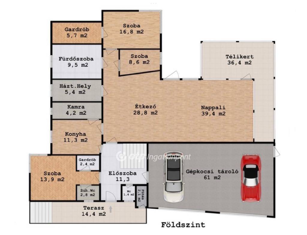 - Lakóház: pince, földszint, tetőtér 400 m2, beépíthető padlástér 130m2 , melléképület: 60 m2