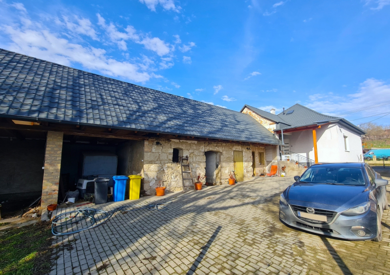 A kocsibehajtó elektromos kapuval nyílik, a szintén térkövezett udvarban több autó meg tud állni.