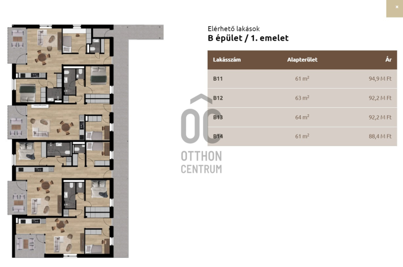A lakóépületek külsőfolyosós kialakítással épülnek, tájolásuk kedvező.