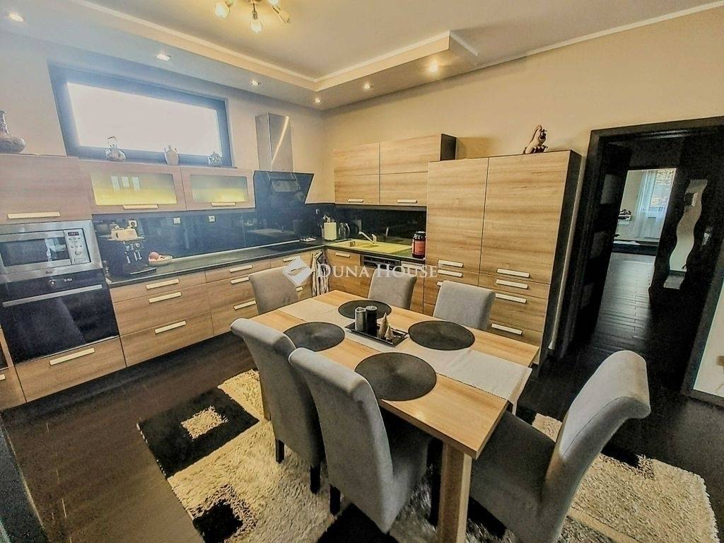 Ez a modern, 2013-ban elkészült ingatlan 160 m² lakótérrel, 40 m² fedett terasszal és 744 m² parkosított telekkel kínálja a kényelmes otthon lehetőségét. A ház építésekor korszerű anyagokat és technológiákat használtak, beleértve a modern műanyag nyílászárókat motoros alumínium redőnyökkel és szúnyoghálókkal, valamint a radiátoros és padlófűtés kombinációját, melyet kondenzációs kazán szolgál ki. Az elektromos hálózat szintén új és korszerű kialakítást kapott, az udvar pedig elektromos kapuval felszerelt.
