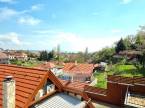 Az emeleten (tetőtérben) nappali-konyha, gardrób, két hálószoba, fürdőszoba tusolóval és gőzkabinnal, valamint külön WC került kialakításra. Minden helyiségből üvegajtó nyílik a házat 3 oldalról körbevevő körteraszra. Az emelet megközelíthető bentről, de külső lépcsőről is elérhető, így egy teljesen önálló lakrészként kezelhető.
