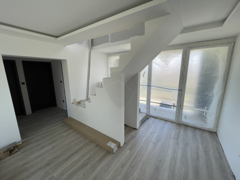 Az amerikai konyhás nappali és az erkély csodálatos panorámát nyújt a hegyvidékre, amitől igazán különlegessé válik. Az ingatlan 150 négyzetméteres, kétszintes, modern kialakítású. Tartalmaz egy igényes amerikai konyhát, nappalit étkezővel, beépíthető gardróbokat, öt szobát és egy fürdőszobát, külön nyíló WC-vel. Az erkély 5 négyzetméteres, és a lakáshoz tartozik egy zárt udvari parkoló is. Az ingatlan nem bútorozott, így új tulajdonosa saját ízlése szerint alakíthatja ki.