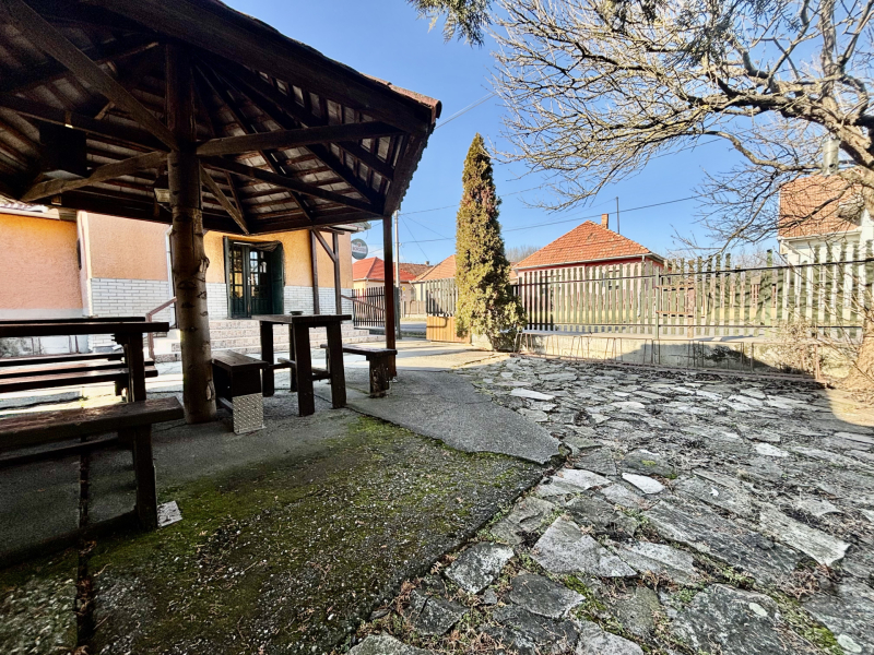 Az ingatlan két bejárattal rendelkezik, így könnyen hozzáférhető, emellett egy kinti pavilon is biztosítja a szabadtéri vendéglátást. A telken egy faház is található, amely további lehetőségeket biztosít a különféle rendezvényekhez vagy vendégfogadáshoz.