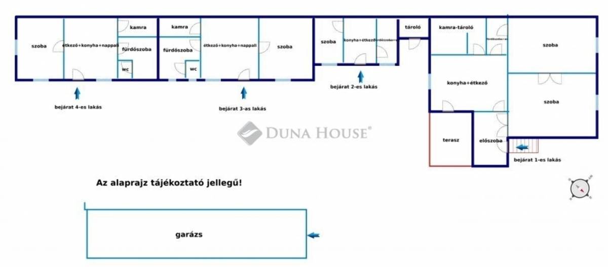 Eladásra kínálunk egy négylakásos ingatlant Budapest Kossuthfalván, amely több generációnak vagy befektetésnek is kiváló lehetőség.A négy önálló lakás egy telken található , mindegyik önálló bejárattal rendelkezik, biztosítva ezzel az intimitást és kényelmet minden lakó számára.Az ingatlanegyüttes telekhatárra épült.Az első lakás kettő nagyszobával rendelkezik utcai kilátással. A konyha+étkezőből hangulatos terasz nyílik amely a belső kertre néz. Kényelmes nagy előszoba, konyha étkezővel és fürdőszoba helységek összes nettó alapterülete 66 m2.A második lakás konyha,szoba és fürdőszoba helységekből áll ami mindösszesen 32 m2 alapterületű.A harmadik lakás amerikai konyhás nappali , hálószoba,fürdőszoba, wc és kamra helység összesen 45,51 m2.A negyedik lakás paraméterei s helységei megegyező a harmadik lakással ami nettó 43,26 m2 alapterületű,Az ingatlan lehetőséget biztosít több generáció együttélésére, miközben megőrzi az egyéni életterek privát jellegét. Ezen kívül befektetésként is ideális választás, hiszen az önálló lakások könnyen kiadhatók, garantálva ezzel a tulajdonos számára egy stabil jövedelemforrást.Az ingatlan kiváló tömegközlekedési kapcsolatokkal rendelkezik, így Budapest bármely pontja könnyen és gyorsan elérhető.Ez az ingatlan ritka lehetőség mindazok számára, akik Budapesten keresnek otthont vagy befektetési lehetőségetA garázs több autó számára is parkolási lehetőséget biztosít, ami a belvárosi élet ritka és értékes kényelmét jelenti.Ne hagyja ki ezt az egyedülálló ajánlatot, lépjen kapcsolatba velünk, és tegyen szert arra a különleges helyre, amely otthonává válhat.