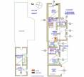 Helyiségek: földszint: nappali-étkező, konyha, 2 szoba, 1 félszoba (dolgozó), 2 fürdő (mindkettő WC-vel egyben), 2 közlekedő (lakrész össz. hasznos alapterület: 77,38 m2), garázs, fedett terasz; tetőtér: galéria jellegű lakóelőtér, szoba (össz. nettó alapterület: 26,23 m2).
