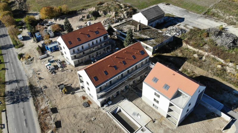 A földszint + 2 emelet + tetőtér kialakítású épületekben összesen 32 db különböző méretű lakás lesz elhelyezve.