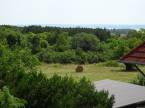 A tágas terasz a kert hátsó részére nyílik, ahonnan még a Balaton is látható, valamint szép tájpanorámában gyönyörködhetünk. Hátsó szomszéd nincs, mivel a hátsó telekhatár mögött már külterület van.