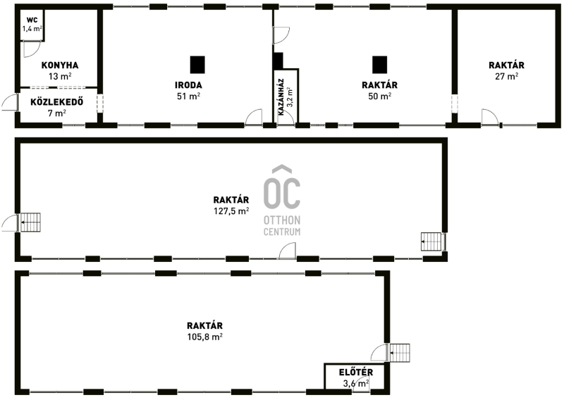 valamint egy 500nm-es összközműves raktárcsarnok, több irodahelyiséggel.