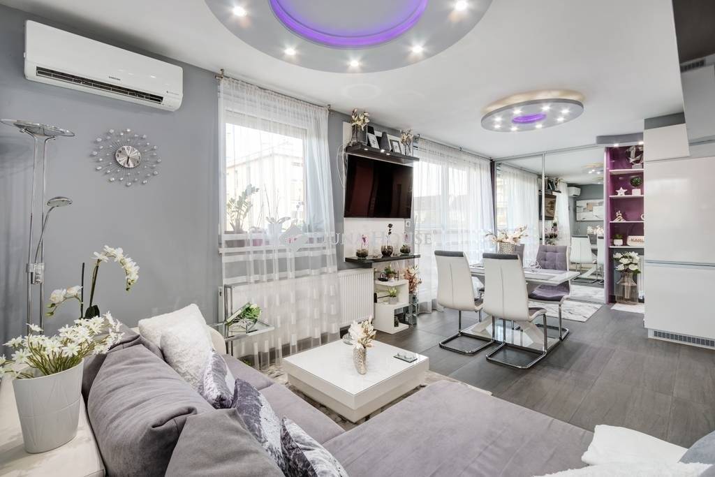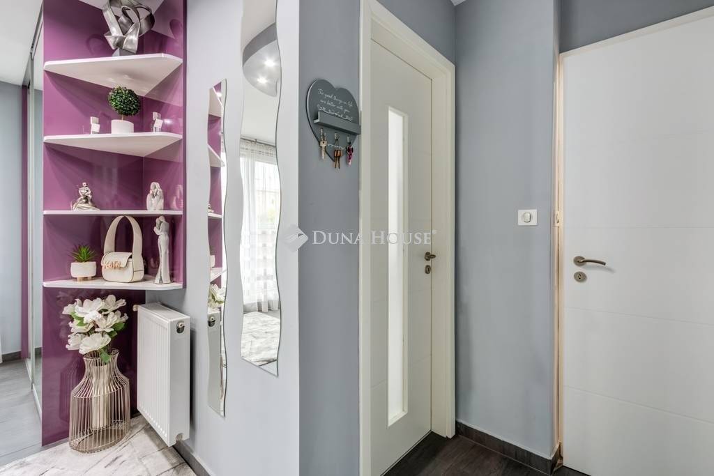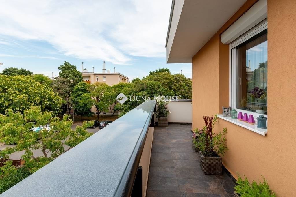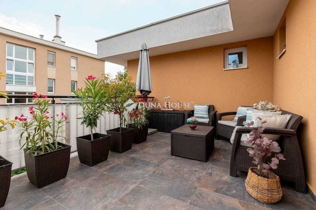 PASKÁLFÜRDŐ KÖZELÉBEN ÚJSZERŰ, PENTHOUSE LAKÁS teljes berendezéssel ELADÓ!XIV. kerületben, a Rákospatak és a Paskál fürdő közelében, parkos környezetben eladó egy 2015-ben igényesen megépített, folyamatosan karbantartott 9 lakásos társasház 2. emeletén egy nappali + 2 hálószobás, penthouse jellegű design lakás hatalmas terasszal (lakás: 56nm, terasz: 56nm). A lakáshoz tartozik egy garázs beállóhely és egy 5nm-es tároló, melyek opcionálisan megvásárolhatók (10M Ft összesen).A lakás DK, D és DNy-i tájolásának köszönhetően rendkívül világos és körbenapozott. Az ingatlan teljesen intim, mivel nincsen közös falfelület másik lakással. A felhasznált anyagok tökéletes összhangban igazodnak a letisztult stílushoz továbbá számos extra biztosítja a LUXUS ÉLETÉRZÉSÉT: - egyedi tervezésű, magas fényű bútorok- prémium kategóriás burkolatok- indecor mennyezet világítás- Whirlpool 6 érzék konyhagépek- legrand kapcsolók és konnektorok- Samsung digital inverter klíma- redőnnyel felszerelt ablakok és tolóajtós teraszajtó - automata garázs- és kertkapu- fűtött garázs lejáró- szolgáltatóhoz bekötött riasztórendszer- automata öntözőrendszer a kertbenA fűtésről és meleg víz ellátásról kondenzációs gázkazán gondoskodik (radiátorokkal és padlótfűtéssel kombinálva), ennek és a kiváló szigetelésnek köszönhetően kimondottan alacsony a lakás fenntartási költsége. A környék kiváló infrastruktúrával rendelkezik: bevásárlóközpontok, tömegközlekedés bolt, gyógyszertár, óvoda, iskola karnyújtásnyira elérhetőek.-----------------------------------------------------------------------------------------------------------------------------------------------------------------------------------A Duna House teljes kínálatával kapcsolatban forduljon hozzám bizalommal! Eladás és vétel teljes körű ügyintézése, ingyenes tanácsadás, értékbecslés, megbízható ügyvédi és jogi háttér biztosítása. Hitel ügyintézés a legjobb feltételekkel, a leggyorsabban és díjmentesen!