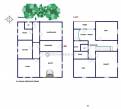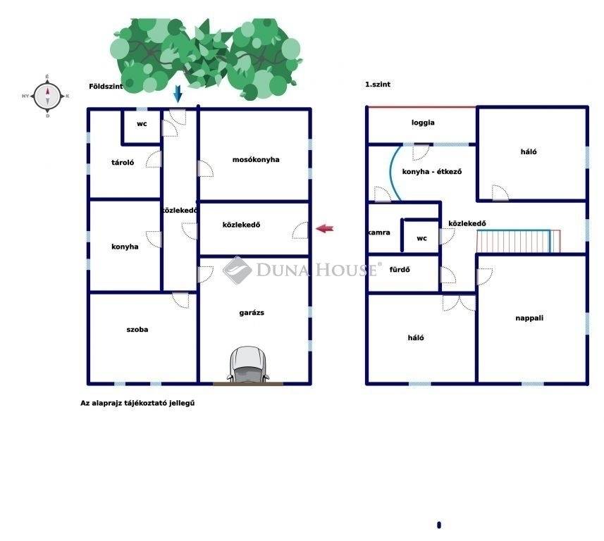 Az épület földszintjén szoba, konyha, háztartási helyiség, tároló, wc , közlekedő és az utcáról nyíló 22 m2-es garázs került kialakításra.