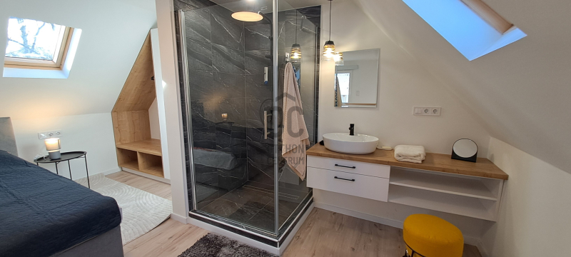 A 384 m²-es osztatlan közös tulajdonú telken található tetőtér beépítéses tégla iker apartman 2-es lakása 2 szobával, 40 négyzetméteres alapterülettel rendelkezik, így akár a család, baráti társaság vagy vendégek fogadására is ideális. A nappali – konyha a földszinten, míg a háló és a fürdő a tetőtérben került kialakításra. A tágas belső terek modern és igényes kialakításúak: a konyha és nappali járólappal burkolt, míg a hálószoba vízálló laminált padlót kapott A komfortot tovább növeli, hogy a hálószobában saját mosdó és tuskabin található. A WC a földszinten kapott helyet.
