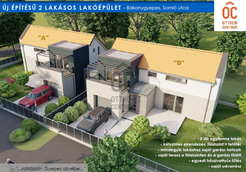 Ajka Bakonygyepes központjában modern, kétszintes családi házak eladók, ideális választás lehet gyermekes családok számára.