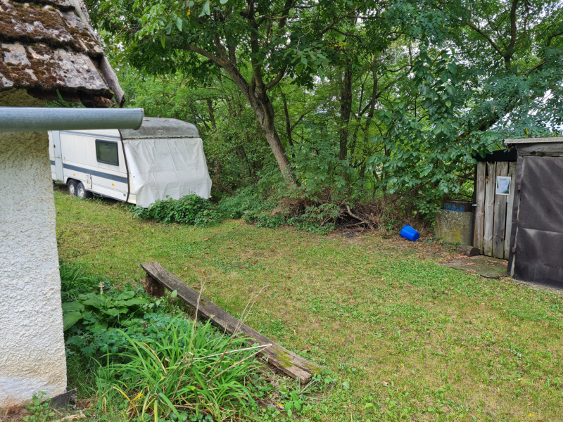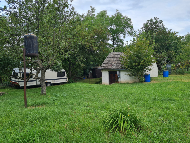 A ház alatt helyet kapott egy konyha-étkezősarokkal, hálófülkével és mosdóval rendelkező nagyon jó állapotú lakókocsi is, mely opcionálisan megvásárolható az ingatlanhoz.