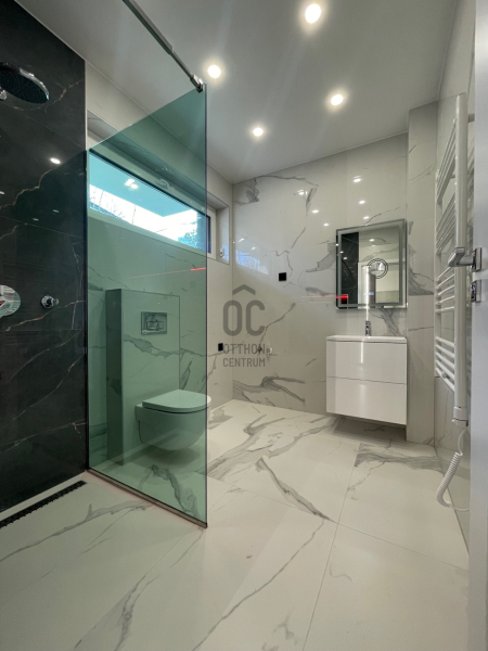 II. emeleti részen: szülői hálószoba gardróbbal és saját fürdőszobával, valamint 2 hálószoba külön fürdőszobával és erkély vagy teraszkapcsolattal