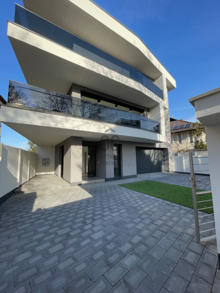 földszinten: duplagarázs, mosókonyha zuhanyzóval, gardróbbal/tárolóval