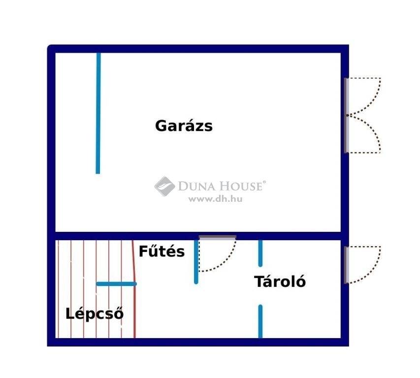 Az alagsorban vannak a tárolók és a fűtőhelyiség.