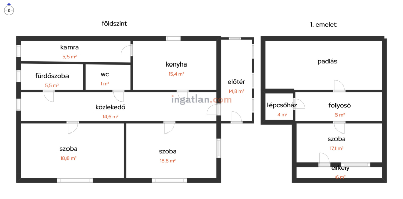 A felső szinten kialakításra került egy közlekedő és egy nagyobb méretű hálószoba, egy további helyiség pedig még kialakításra vár. Értéket növel egy fűtő-hűtő klíma. A ház egy része alatt egy beton burkolatú, száraz pince helyezkedik el, a ház mögött pedig egy szerelőaknával ellátott zárt garázs, valamint több gazdasági épület és tároló található. A 2064 nm-es telek részben elkerített, akár meg is osztható. Jelenleg nincs művelve, bővítési lehetőség adott. Az ingatlan birtokba adása a teljes kifizetés után gyorsan kivitelezhető!