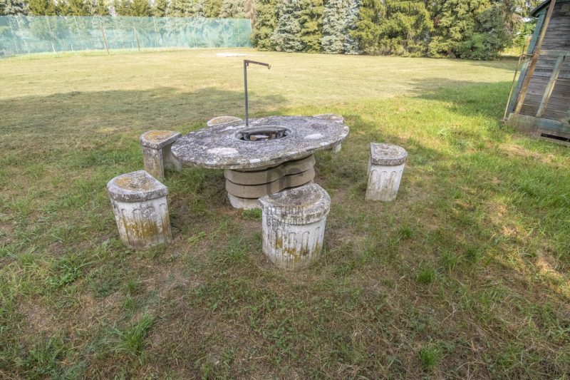 A birtokon teniszpálya, hatalmas legelő és művelt földterület is található.