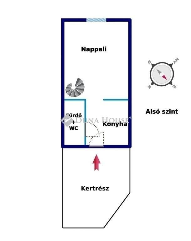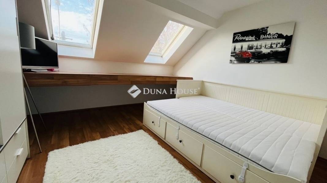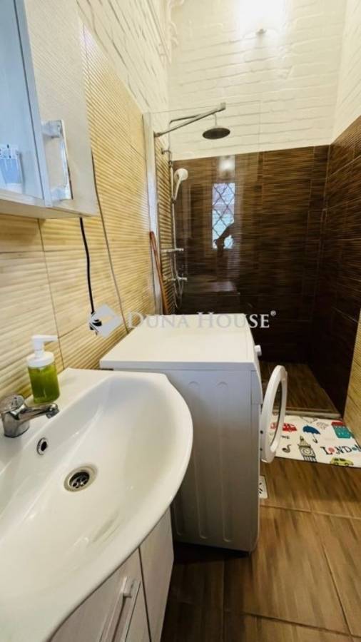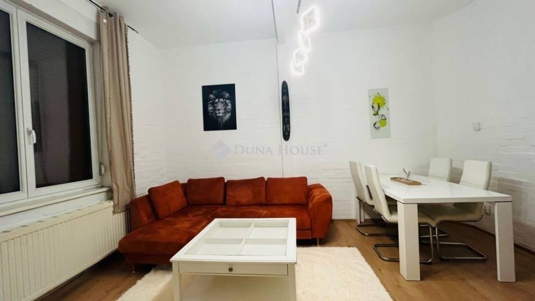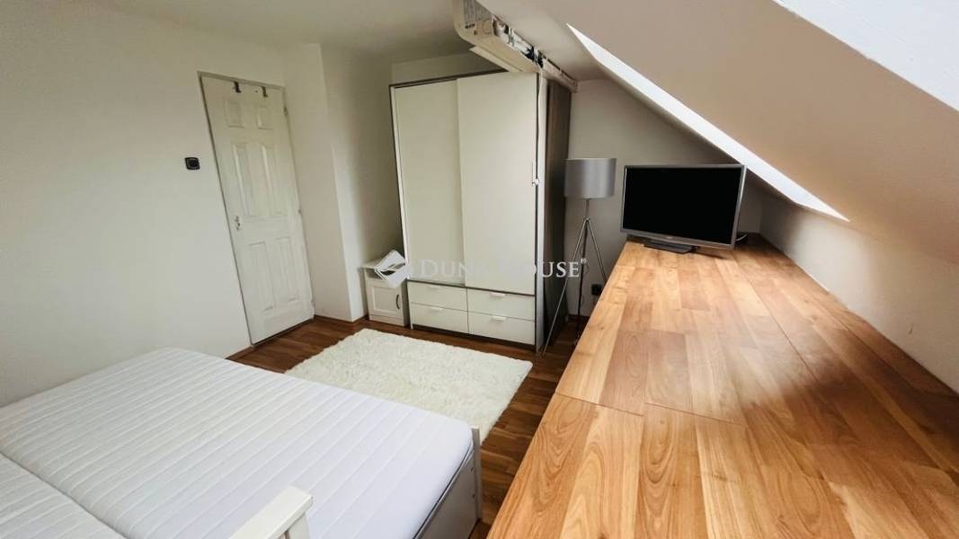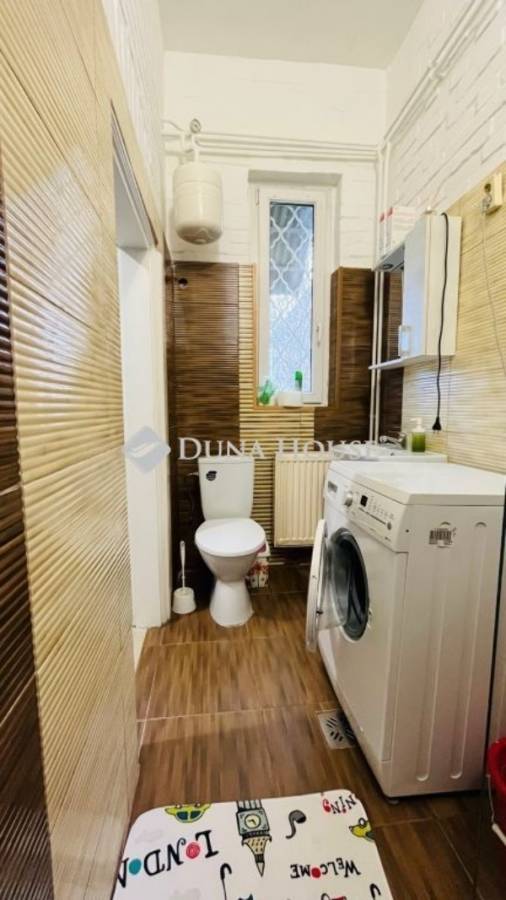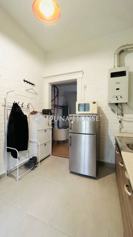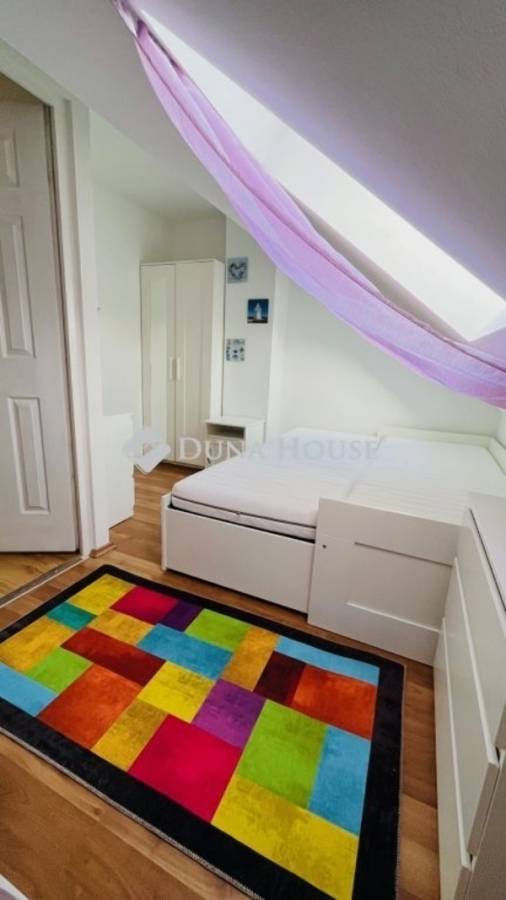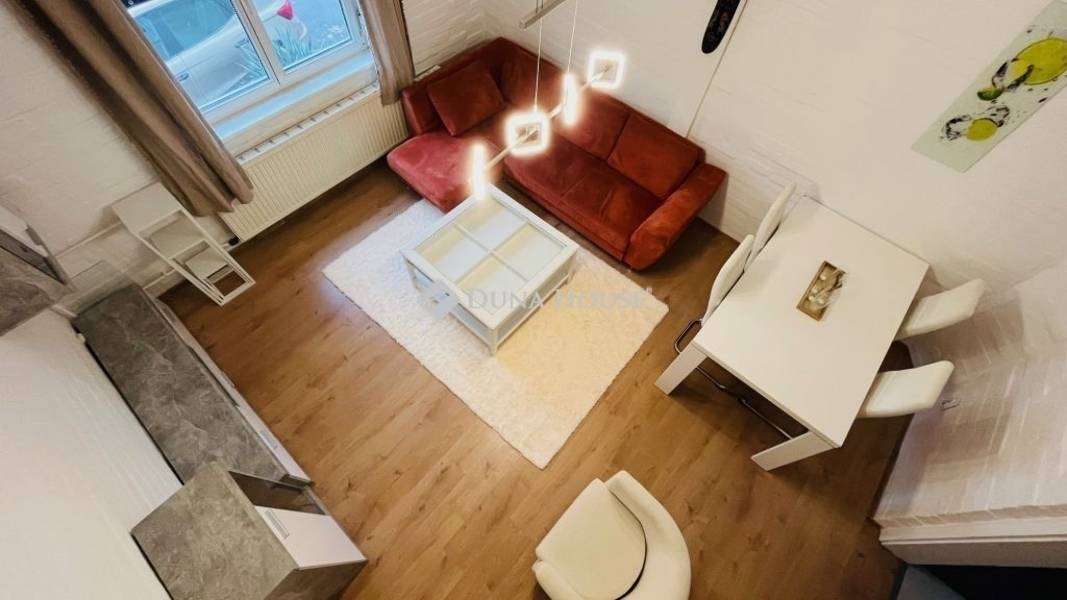 XX. kerületben közvetlenül a Tátra téri piac mellett, kis utcára néző illetvesaját telekrésszel is rendelkező, jó állapotú társasházi ingatlan ELADÓ!A megadott összegért 77 nm vehető birtokba, melyből 17 nm a lekerítettkertrész, 4 nm egy kizárólagos használatú tároló. A lakás nettó 48, bruttó 56 nm alapterületű, alsó szintje 31 nm, ahol egy utcára néző nappali, fürdő+WC, valamint konyha található. Az emeleti szint bruttó 25 nm, ahol gipszkartonnal szétválasztott két háló helyezkedik el, a nagyobbik klímás. Felül Velux tetőtéri ablakok, alul standard fehér műanyag nyílászárók kerültek beépítésre redőnnyel és szúnyoghálóval.A fűtésről egy 4 éve felújított FÉG cirkó gondoskodik, a melegvizet hasonlómárkájú gázüzemű átfolyós vízmelegítő adja. A kémény 2007-ben lett kibélelve, a zuhanyzós fürdő felújítása 2021-ben történt meg, amikor nem csak itt, de a konyhában is új csövek lettek letéve. A képeken látható bútorok és berendezések zöme a vételár részét képezik, ezekkel a lakás könnyedén kiadható, jelenleg is bérlő él benne. Költözni alapvetően június közepén lehet, ezért banki hitel jelen esetben egyáltalán nem akadály!A hét lakásos épület jó közös képviselettel rendelkezik, kívül-belül rendezettképet mutat. A szomszédok vigyáznak a közös részekre, a postaládák újak,a kapu mindig zárva van tartva. Parkolni gyakorlatilag a lakás ablaka előttlehet, a Tátra téri buszmegálló 4 perc séta, csupán 300 méter. Kérdésekesetén kérem hívjon telefonon, vagy küldjön üzenetet, jöjjön el és nézzükmeg együtt, nem fog benne csalódni!