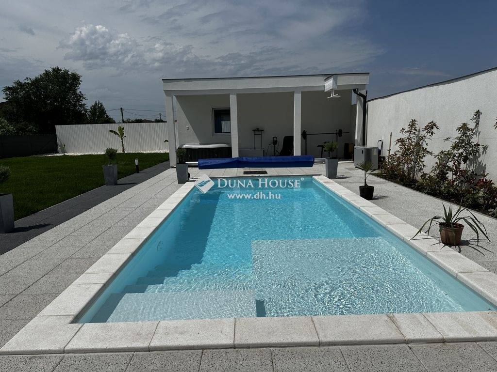 MINIMALISTA, TRIPLA KOMFORTOS, MEDENCÉS CSALÁDI HÁZ ELADÓ Szolnokon!Ingatlanfejlesztőtől eladó egy saját részre tervezett, kiemelkedő műszaki tartalommal rendelkező, MINIMALISTA stílusban megépített, PRÉMIUM kategóriájú családi ház.A minden igényt kielégítő családi otthont a tulajdonos megálmodta, majd 2023-ban megvalósította. Az ingatlan 936 m2-es telken helyezkedik el, nettó 243 m2-en, két szintre elosztva.A ház alapterületében a lenti részen amerikai konyha - nappali - étkező, kamra, fürdő, WC, háztartási helyiség, szülői háló és egy gyerekszoba, valamint a nappaliból nyíló 43 m2-es fedett terasz található.A felső szinten egy teljesen különálló lakrészt alakítottak ki, így akár az ingatlan több generáció együtt élésére is tökéletesen alkalmas. Itt található 2 tágas gyerekszoba, közös – fedetlen - 16 m2-es terasszal, fürdő-WC külön helyiségben, hall és konyha-étkező.A szobákban hűtő-fűtő klímák szolgáltatják az évszaknak megfelelő hőmérsékletet, a nappaliban hangulatos kandallót helyeztek el, a ház többi helyiségében padlófűtés gondoskodik a melegről. A különböző helyiségekhez tartozó wifi-s termosztátokkal okostelefonról is szabályozható a benti hőmérséklet. Az intelligens elektromos bojlernek köszönhetően a vízfelhasználás is energiatakarékos, a szintén mobiltelefonról is működtethető vízmelegítő alkalmazkodik a lakók vízfogyasztási szokásaihoz.A házra jellemző letisztult stílust számtalan hangulatfénnyel egészítették ki, ami igazán otthonossá varázsolja a különböző helyiségeket.Az udvaron a tulajdonosok kényelmét szolgálja egy felső kategóriájú, hőszivattyús, fűthető MEDENCE, valamint a 50 m2-es SZAUNA melyet úgy készítettek elő, hogy akár egy teljes értékű lakóház is kialakítható belőle.Az ingatlanhoz tartozik még két fedett kocsibeálló valamint egy tároló.Lokalizáció szempontjából kiváló! Élelmiszer boltok, bölcsődék, óvodák, oktatási intézmények a közelben, buszközlekedés 10 percenként, a buszmegálló az utca végén található.Bővebb információért, műszaki tartalomért forduljon hozzám bizalommal!Teljes körű hitelügyintézés!