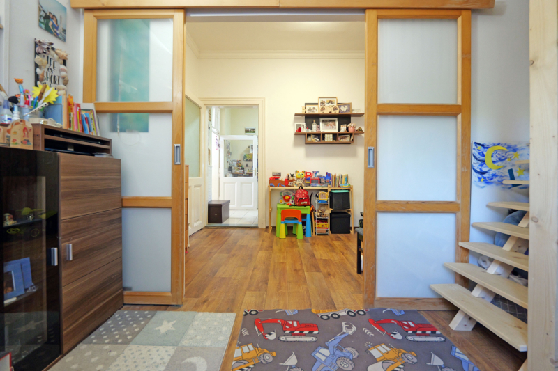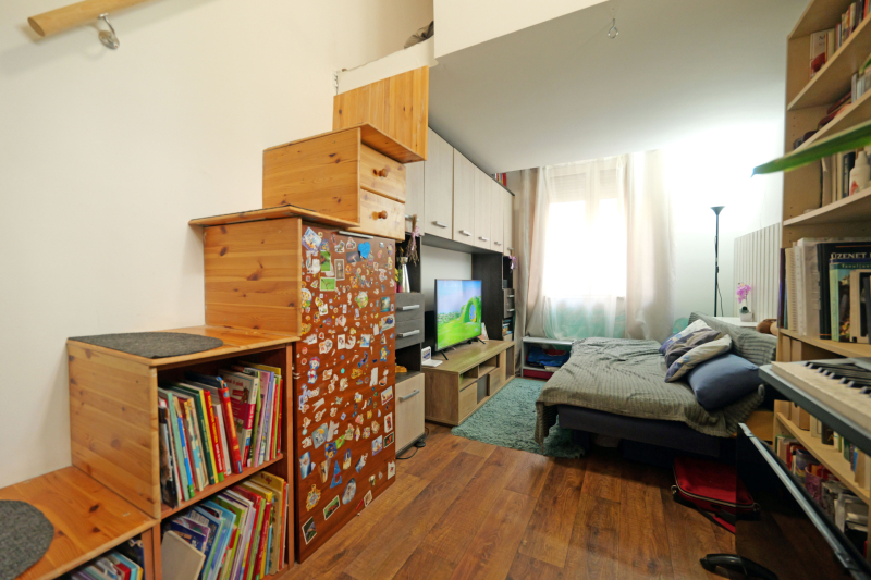 - a nagyobbikban gipszkarton elválasztòfal került kialakításra, ezzel létrehozva külön hálószobát a nappali mellé.