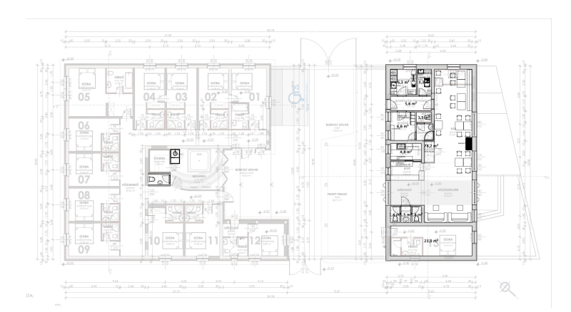 Az 1644 nm-es telken elhelyezkedő épület további bővítési lehetőségeket kínál, így akár konferenciaterem, étterem vagy egyéb szolgáltatóhelyiségek kialakítása is lehetséges. Ezáltal hosszú távon is stabil jövedelemforrást biztosíthat az új tulajdonos számára.