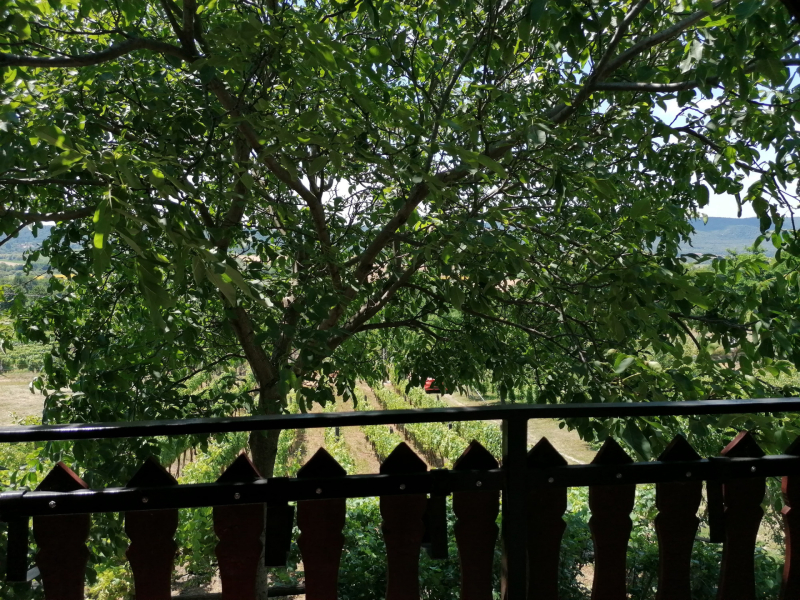 Az enyhén lejtős terület felső harmadában, téglából épített, kétszintes épület a szőlő és gyümölcs termesztés feldolgozását valamint az elvégzett munka utáni pihenést és kikapcsolódást szolgálja.