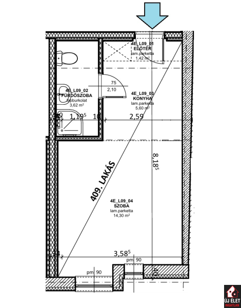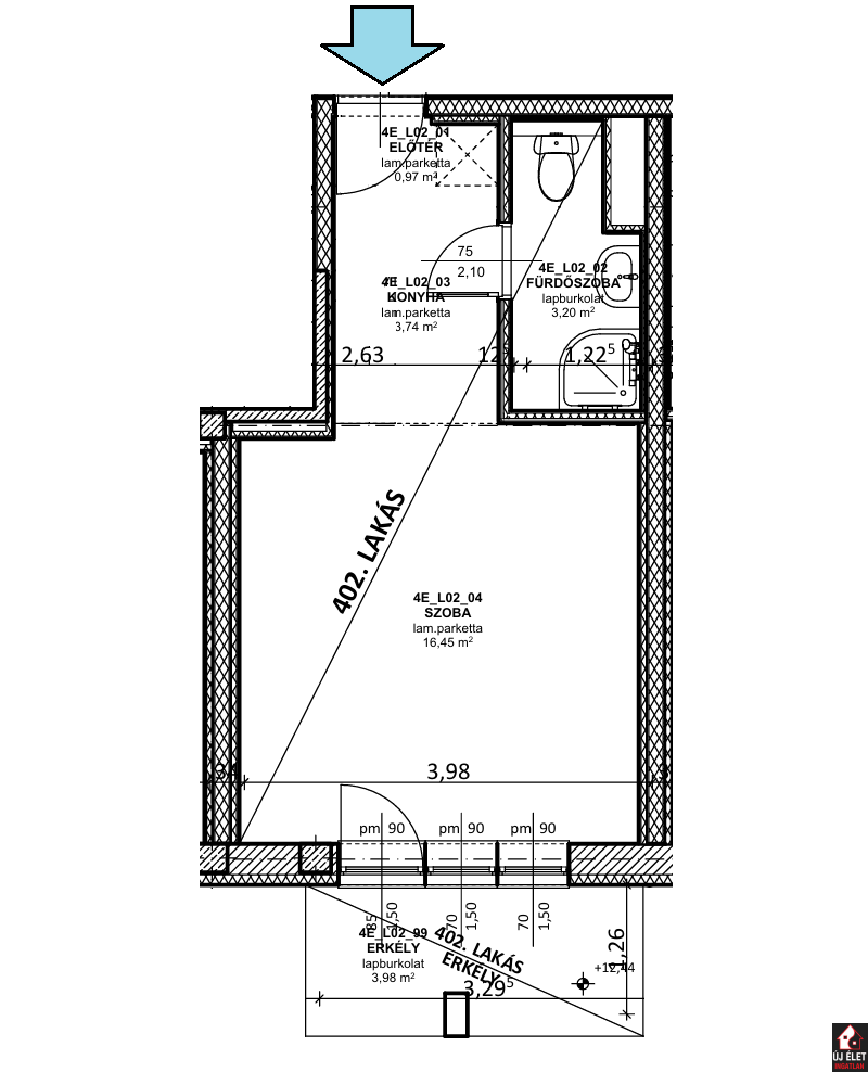 - 42-43 m2 + 3 m2 erkéllyel rendelkező lakások.
