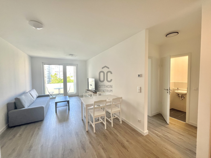 Az i6 Residence by Cordia társasházban 5. emeleti, 46 nm alapterületű + 5,13 nm terasszal rendelkező, NY-i fekvésű, utcai nézetű lakás eladó.