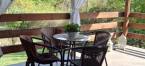 tároló, rózsalugas, néhány gyümölcsfa, diisznövények és füves terület találhatóak.