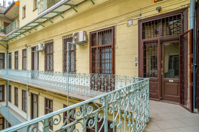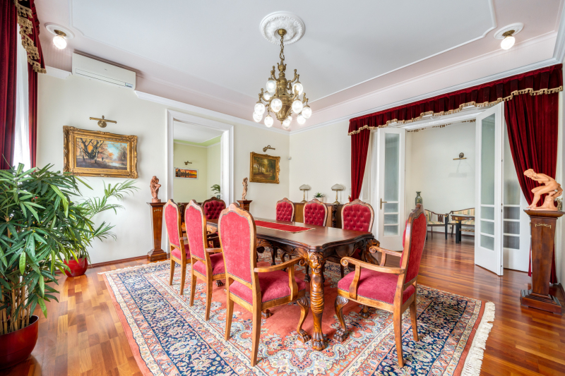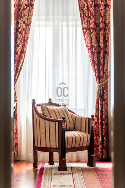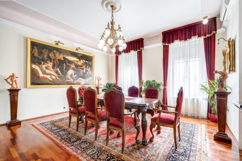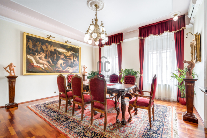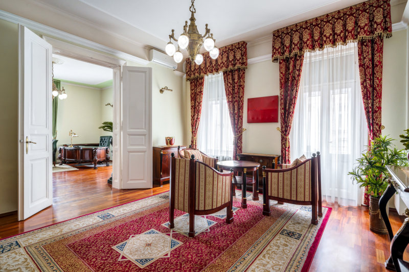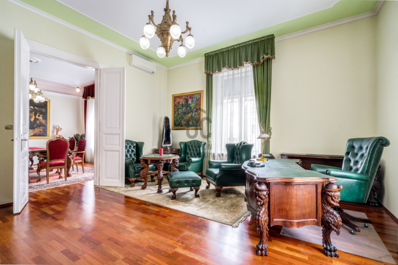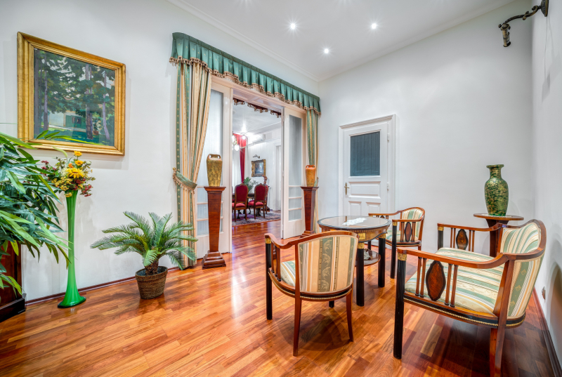 Szecessziós és neoreneszánsz stílus , jellemzi a lakást értékes festmények, ( a legnagyobb festmény kivételt képez a lakásban maradó bútorok jegyzékéből, ezen kívül zsolnay kerámiák, különleges csillárok is az ár részét képezik.