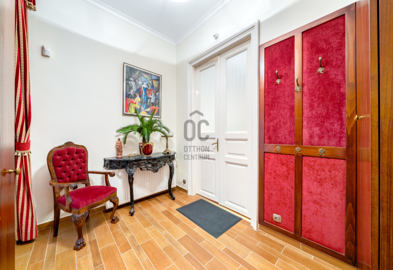 Ezen kívül felújított hő és hangszigetelt ablakok, jatoba fa burkolatok, klíma, lakásriasztó, videós kaputelefon, elektromos árnyékolás, valamint széf is be lett építve.