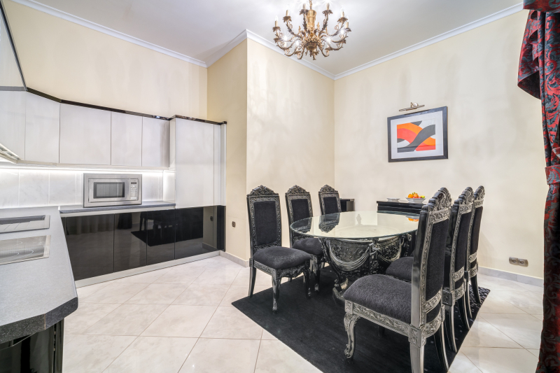 A gépesített konyhabútor ugyanúgy az ár részét képezik mint a lakás teljes felszereltsége, ( ami persze opcionálisan vásárolható meg ) egyedileg kifaragott éger dió kőrisfa bútorokkal, Chesterfield ülőgarnitúrával, bőrfotelekkel.