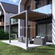 Olasz bioklimatikus pergola forgatható lamellákkal és LED szalag világítással.