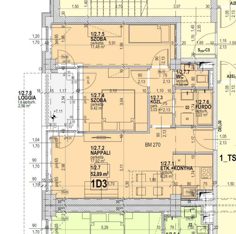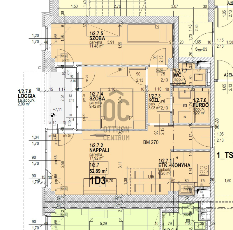 A lakáshoz tartozik egy teremgarázsi autóbeálló és a egy különálló, zárható tároló. Ezek megvásárlása kötelező, vételáruk a lakás vételára felett számítandó.