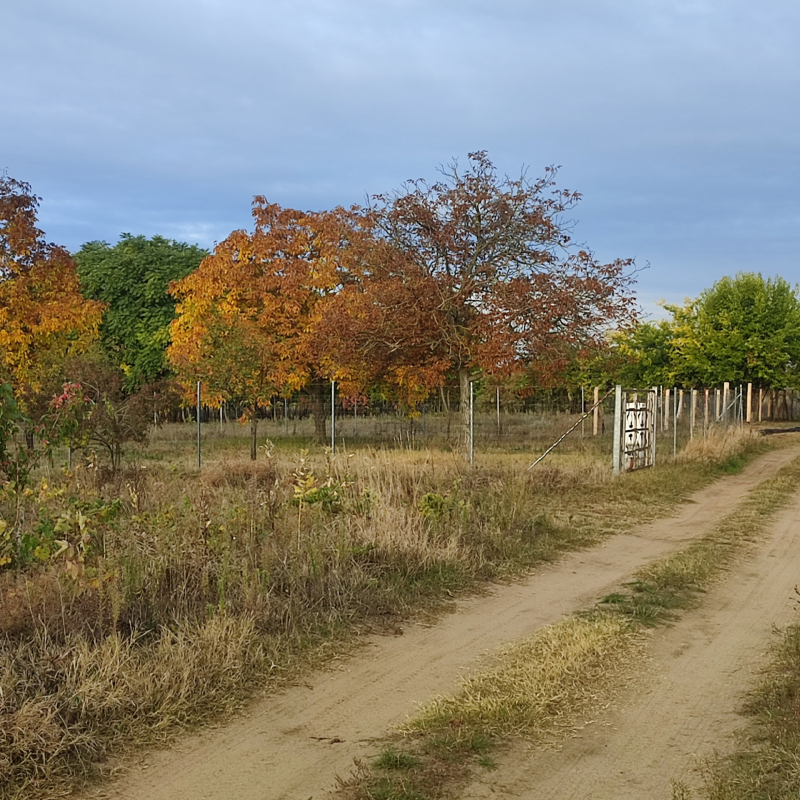 A terület körbekerített, művelt, gondozott. Termő gyümölcsfák találhatóak a telken (dió, meggy, alma, mogyoróbokor)