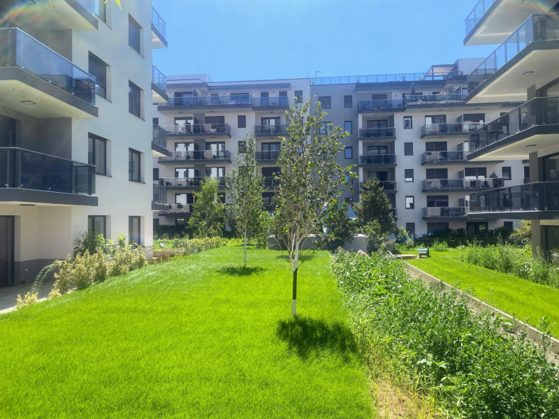 A négy ütemből álló épületegyütteshez összesen 3.000 m2 parkosított kert tartozik majd. A dísznövényes, parkosítot kertek ütemenként megvalósulnak. A társasházak közötti kertek között nincsen átjárhatóság, amely a biztonságérzetet növeli, azonban mégis élvezhetjük az összeépített kertek által nyújtott tágas térérzetet és a kellemes látványt.