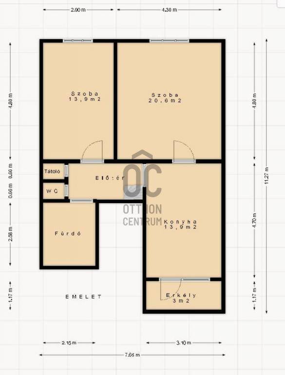 Belső 2szint, szintenként 2 szoba, fürdő.