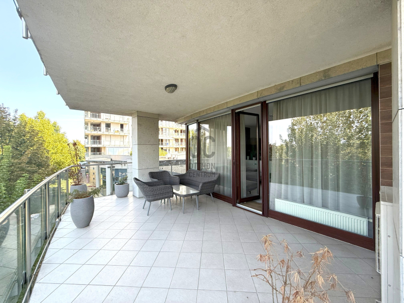 A Marina parton kivételes budai és dunai örökpanorámával rendelkező, 102nm + 24nm teraszos, 4 szobás, Ny-i tájolású, felújított első emeleti lakás kiadó.