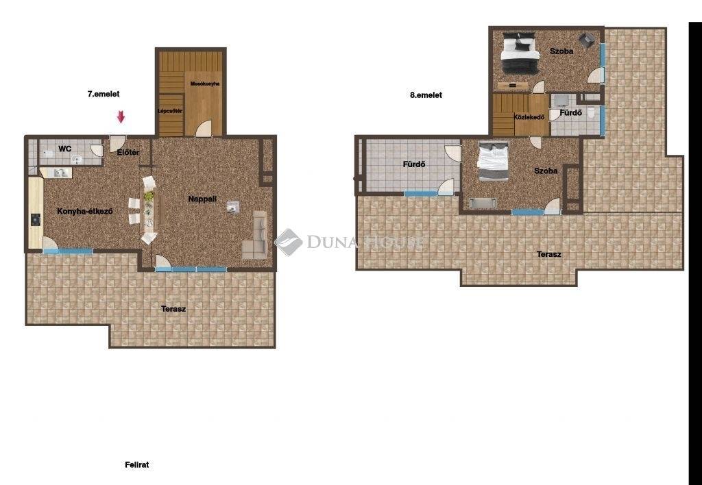 , modern, fiatalos lakások! Budapesten, a XIII. kerület Angyalföld városrészén, egy 2021-ban épült, modern, liftes lakóparkban eladó egy 95 nm-es, belső kétszintes lakás. Az ingatlan két hálószobával, két nagy terasszal, két fürdőszobával és egy külön WC-vel rendelkezik, Ideális választás azoknak, akik egy tágas és kényelmes otthont keresnek a város szívében. A lakás alsó szintjén egy tágas nappali és amerikai konyhás étkező található, melyek közvetlen kapcsolatban állnak a hatalmas terasszal, így a lakás világos és napfényes. Az emeleten két hálószoba és két fürdőszoba és közel 70 m2-es terasz biztosítja a maximális kényelmet. A környék kiváló tömegközlekedési lehetőségekkel rendelkezik! A 14-es villamos, helyi autóbusz járatok, illetve akár az M3 metró megállója is csupán perc sétára található, így a belváros is könnyen megközelíthető. A lakáshoz teremgarázsban parkolóhely vásárolható vagy bérelhető. Találja meg nálunk leendő otthonát, aktuális befektetését!