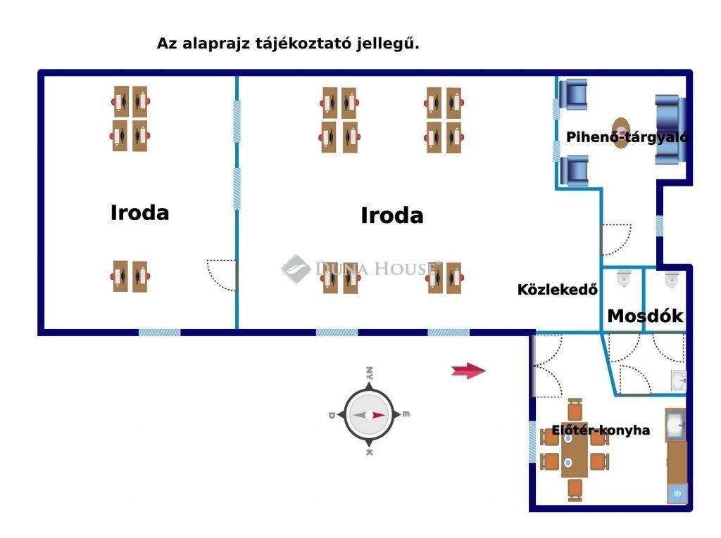 Az iroda azonnal költözhető, minden bútorral és felszereléssel, modern kiegészítőkkel együtt.