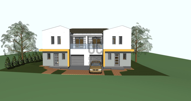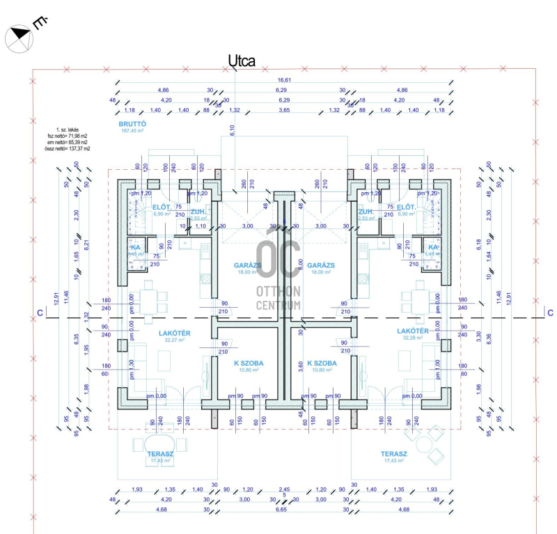 Eladó újépítésű utcafrontos ikerház Budapest XVIII. kerület Almáskert csendes mellékutcájában.