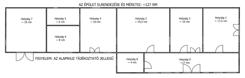 A főépületben található 9 helység, melynek méretei különbözőek: