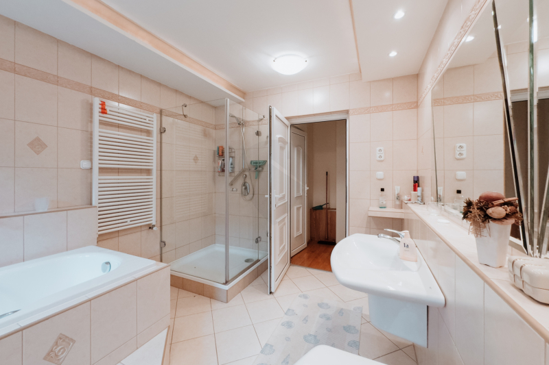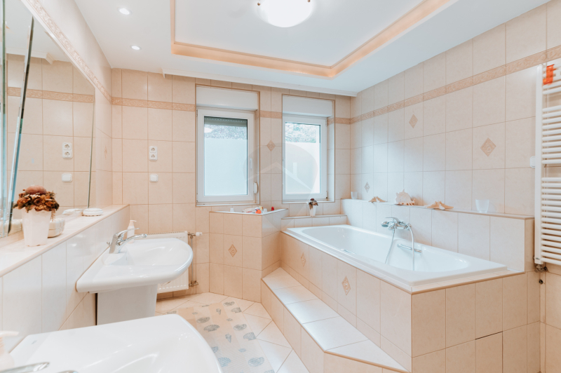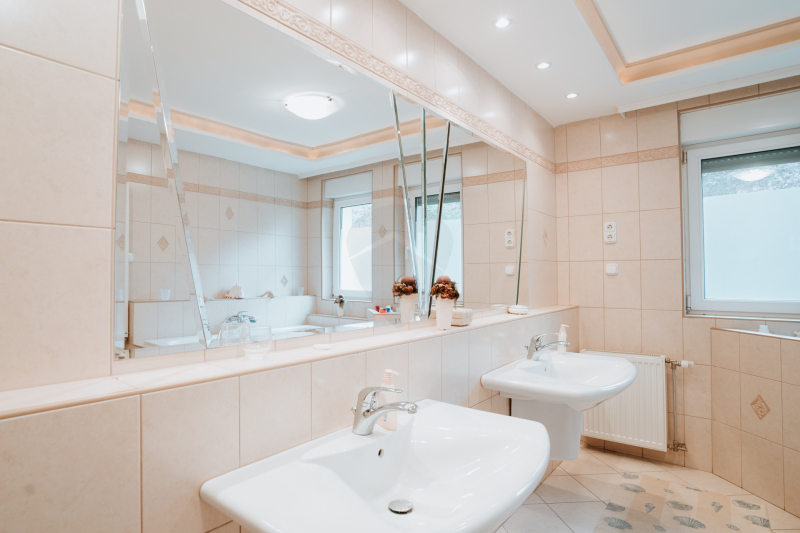 – Nagy méretű fürdőszoba káddal, két mosdóval