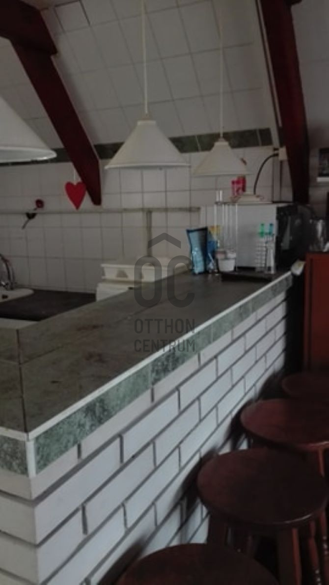 Az ingatlan 1500 nm-es parkosított telken van, nagyon kellemes madárdalos, lakott környéken. Az összességében majdnem 50nm-es nappali -étkező-konyhás 2 hálószobás, fürdőszobás házhoz medence és kis kerti tó is tartozik. M0002825
