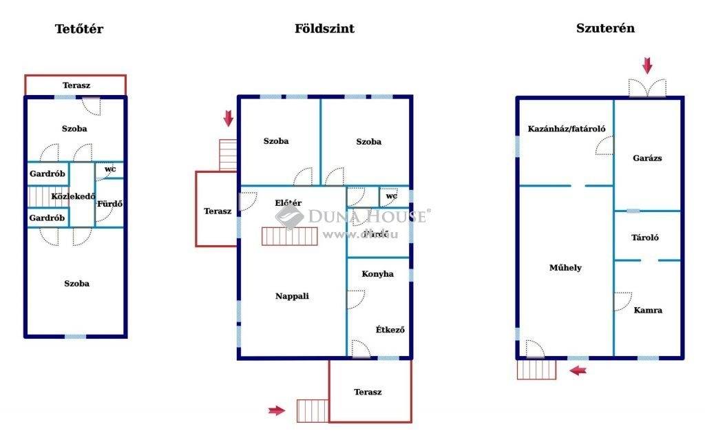 Baja Katonaváros/Szentistván határán eladó 157 m2-es családi ház 467 m2-es telekkel, kétféle fűtésmóddal.1987-ben épült beton alapra Poroton téglából, a födém vasbeton gerendás (kefnis), a tető bátaszéki mázas cseréppel fedett. Az épület 3 szintes, a tetőtér beépített. A lakórész alatt teljes alapterületű szuterén, illetve 20 m2-es garázs került kialakításra. A földszinten (~107 m2) található a 40 m2-es nappali, 2 szoba, tágas előtér, konyha-étkező, fürdőszoba, wc. A bejáratnál és a konyhai résznél egy 7, illetve 12 m2-es terasz került kialakításra.Az emeleten (50 m2) 2 szoba (mindegyik saját gardróbbal), terasz, fürdő, wc és közlekedő található.A szuterén szinten (~100 m2) egy 40 m2-es műhely, illetve rengeteg egyéb célra kiválóan használható helyiség, kamra, tároló, kazánház, illetve a garázs áll rendelkezésre.A ház szerkezetileg kiváló állapotú, elosztása remek. A tágas méretű helyiségek miatt könnyen alakítható, ha pl több szobára lenne szükség. A külső és belső nyílászárók fából készültek, ablakait redőny védi.A szobák parkettásak, rajtuk szőnyeg található, egyéb helyiségekben járólapos borítás került lerakásra.A teraszok teteje drótüveges, a konyhai teraszon levehető ponyva árnyékoló került elhelyezésre.A fűtés radiátoros központi, melyre gázkazán és vegyes kazán is csatlakoztatásra került.A meleg vizet villanybojler állítja elő.Kiépítésre került 3 fázis (2x10+1x16A), plusz 16A éjszakai áram.A közelben megtalálható a Spar, Aldi, gyógyszertár, orvosok, épületgépészeti áruház, buszmegállók, benzinkutak, stb.Érdeklődés esetén keressen bizalommal, nézzük meg együtt!
