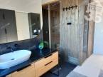 A 25 négyzetméteres hálóból nyíló mosdó helyiségben egy előtétfal mögött dupla zuhanyzó és egy negyed óra alatt 105°C-ra is felfűthető finn szauna található.
